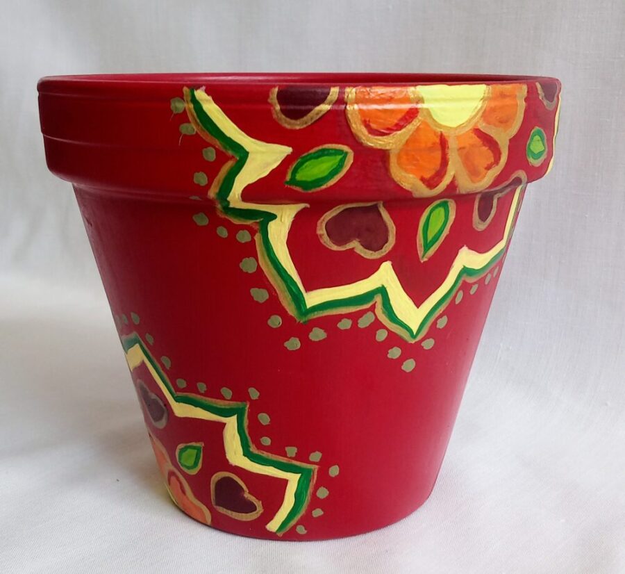 Piros mintás kézzel festett kaspó.